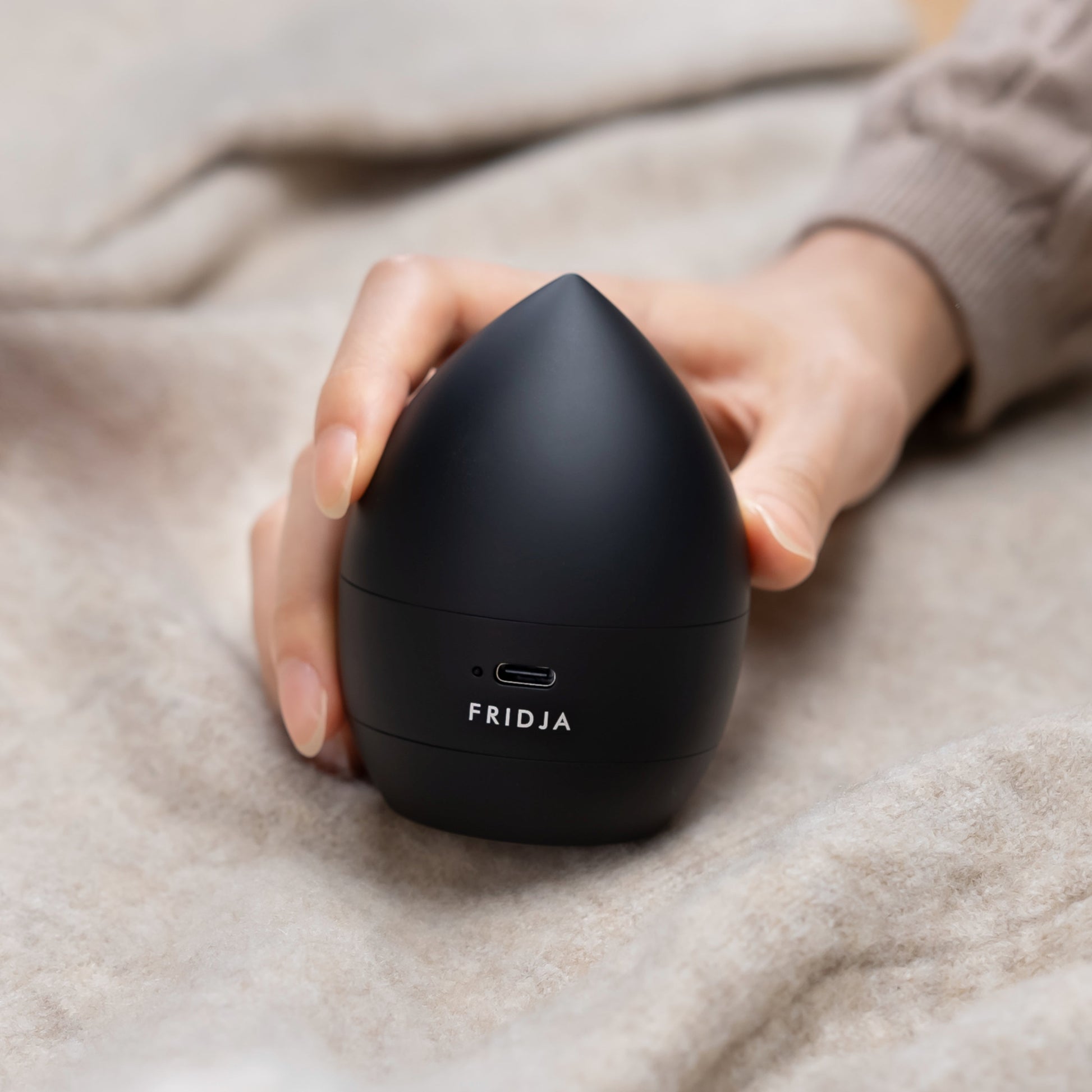 The Fridja f40 Fabric Shaver brings new life to old favourites. It gently removes bobbles and surface fuzz from knitwear, coats and upholstery, leaving fabrics smoother, cleaner and more refined.